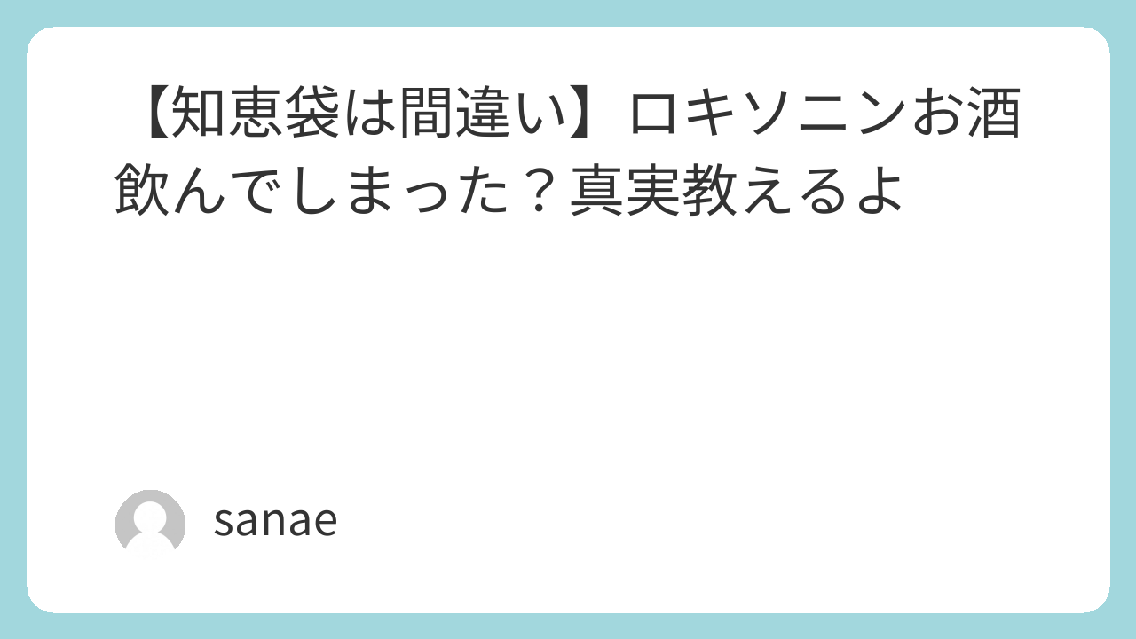 あなたの体は、ロキソニンとお酒の混合実験場ではありません。どうか、自分自身を大切にしてあげてください。