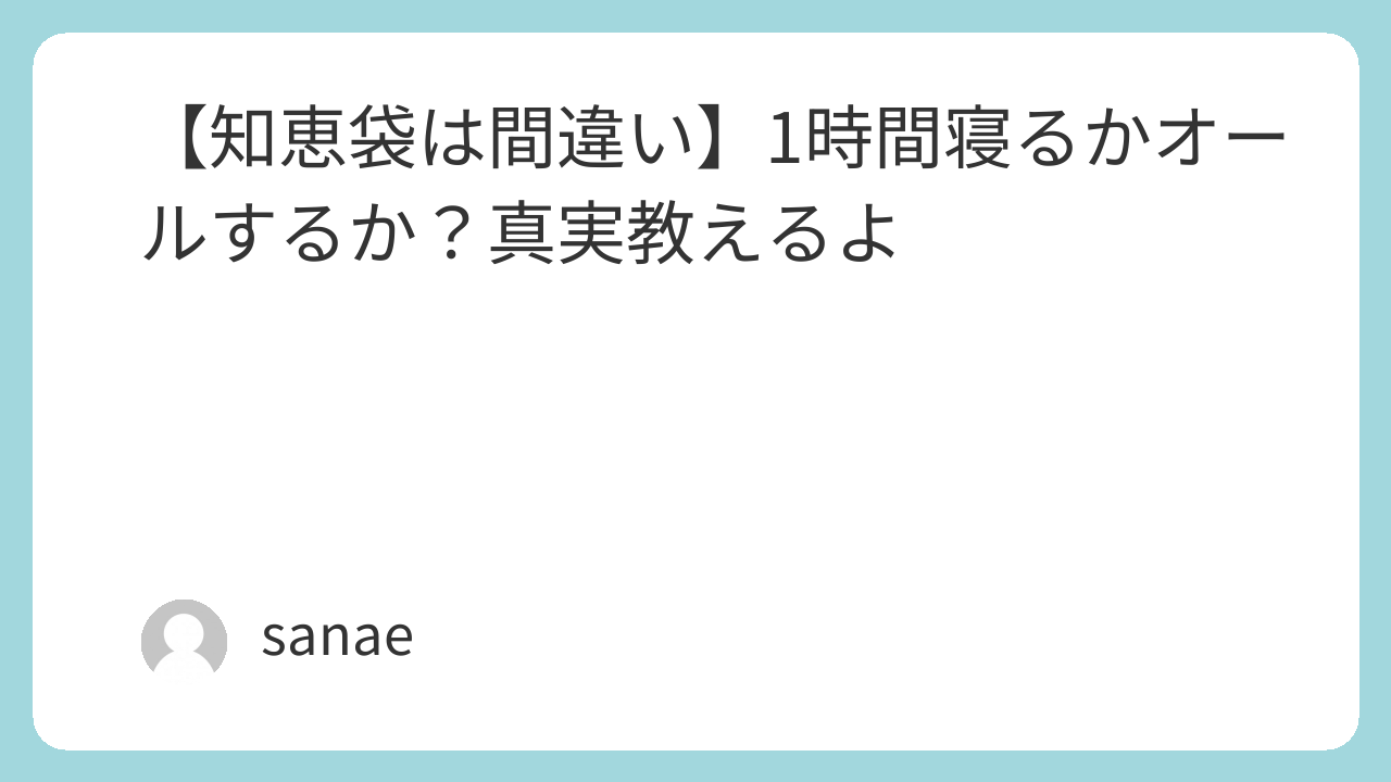 【知恵袋は間違い】1時間寝るかオールするか?真実教えるよ