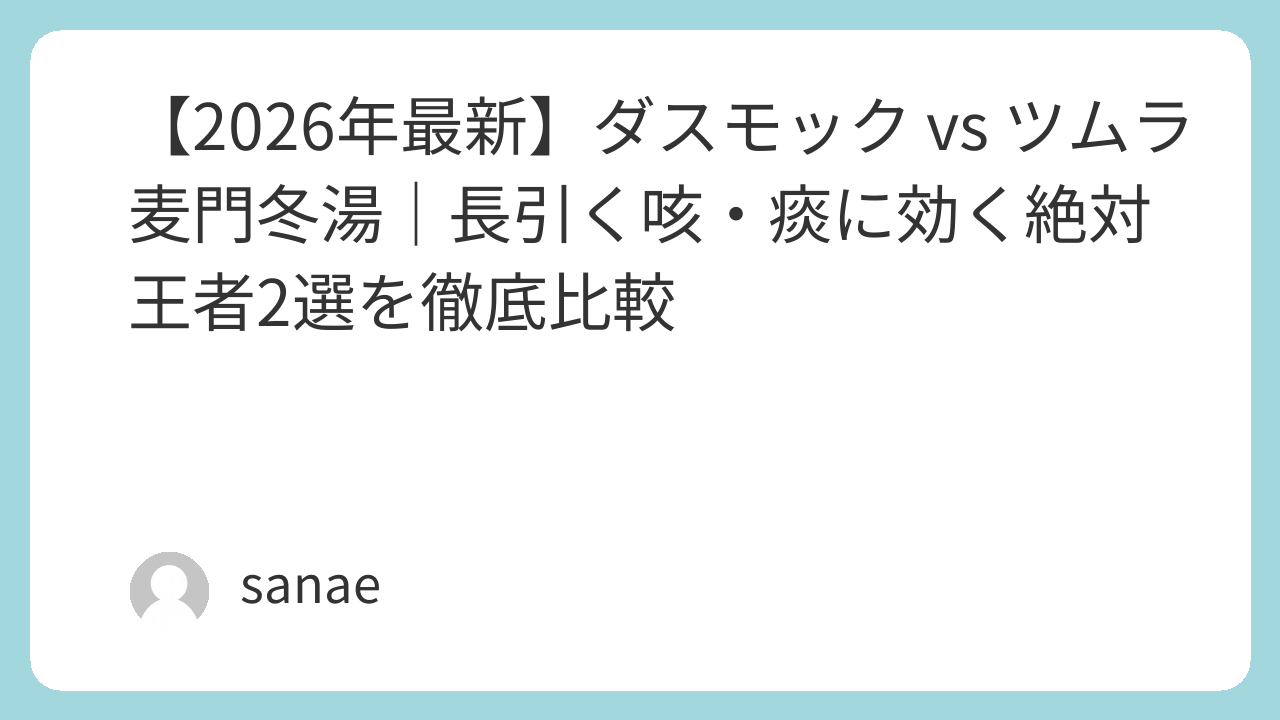 【2026年最新】ダスモック vs ツムラ麦門冬湯|長引く咳・痰に効く絶対王者2選を徹底比較