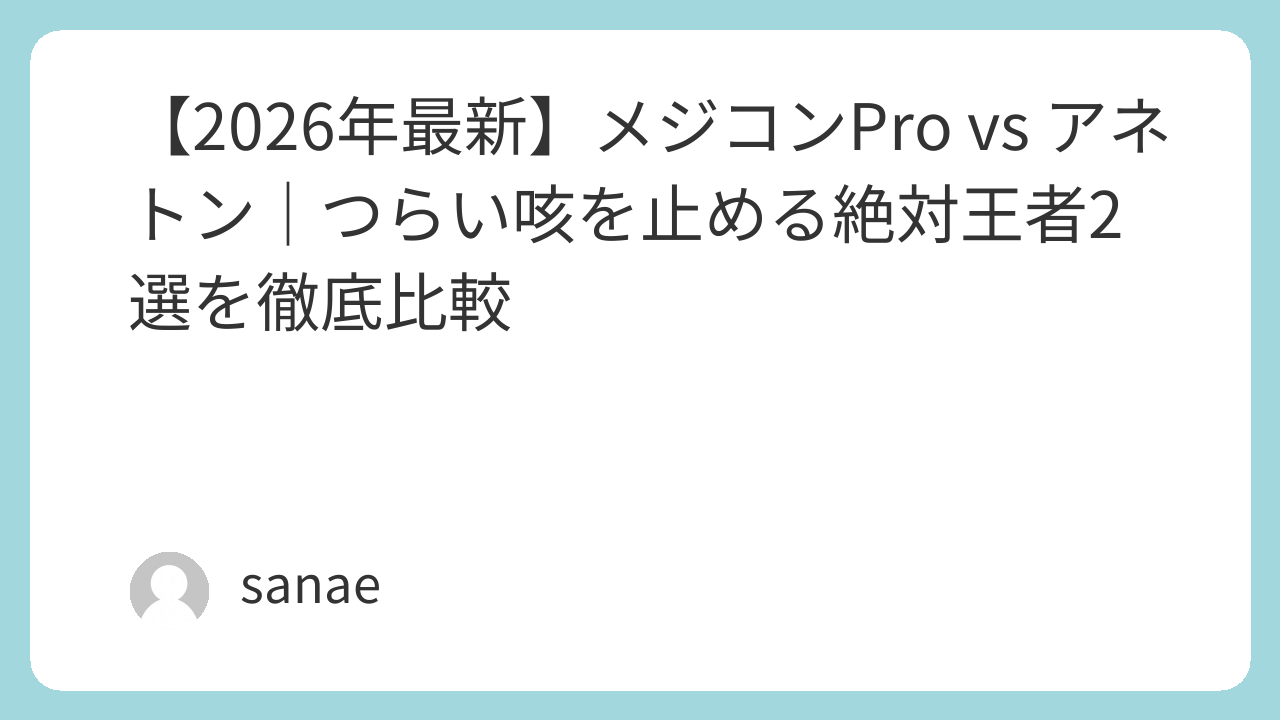 【2026年最新】メジコンPro vs アネトン|つらい咳を止める絶対王者2選を徹底比較