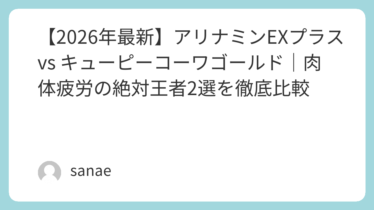 【2026年最新】アリナミンEXプラス vs キューピーコーワゴールド|肉体疲労の絶対王者2選を徹底比較