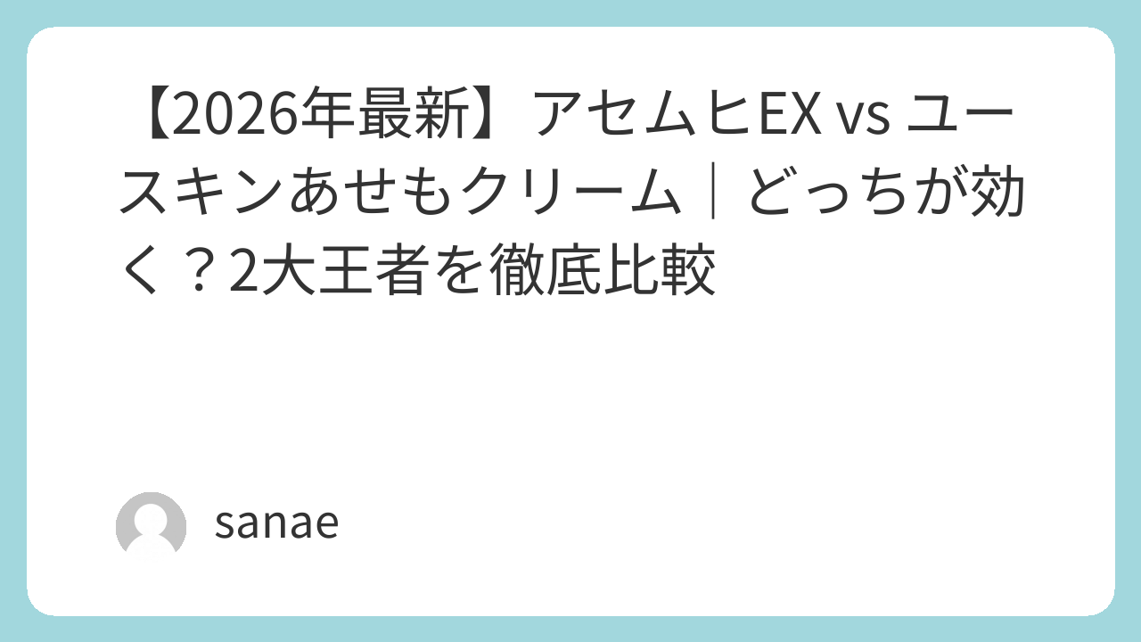 【2026年最新】アセムヒEX vs ユースキンあせもクリーム|どっちが効く?2大王者を徹底比較