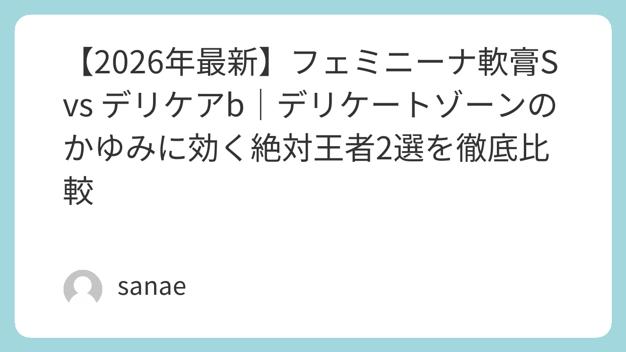【2026年最新】フェミニーナ軟膏S vs デリケアb|デリケートゾーンのかゆみに効く絶対王者2選を徹底比較