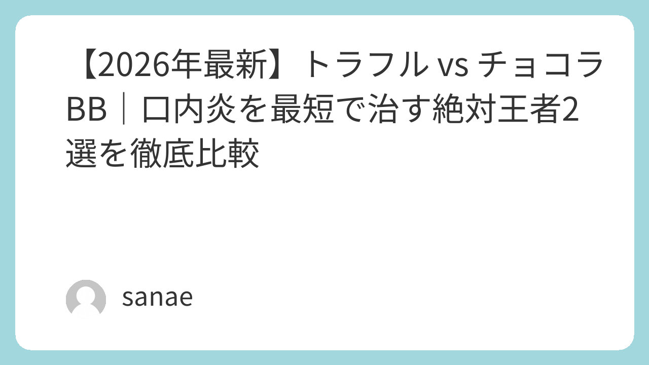 【2026年最新】トラフル vs チョコラBB|口内炎を最短で治す絶対王者2選を徹底比較