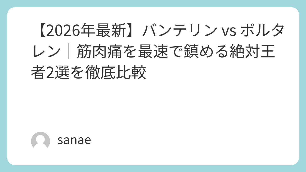 【2026年最新】バンテリン vs ボルタレン|筋肉痛を最速で鎮める絶対王者2選を徹底比較