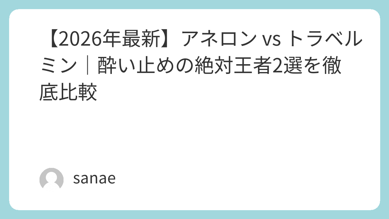 【2026年最新】アネロン vs トラベルミン|酔い止めの絶対王者2選を徹底比較