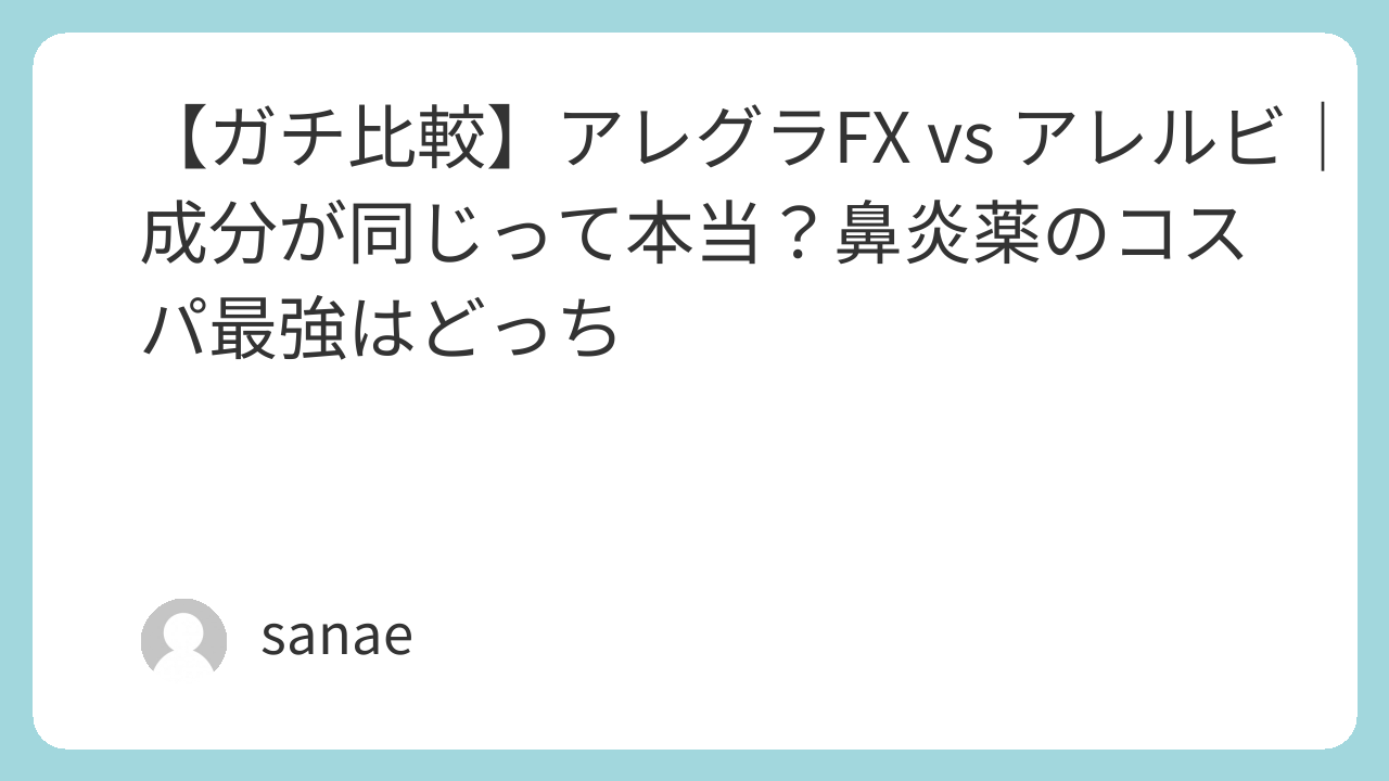【ガチ比較】アレグラFX vs アレルビ|成分が同じって本当?鼻炎薬のコスパ最強はどっち