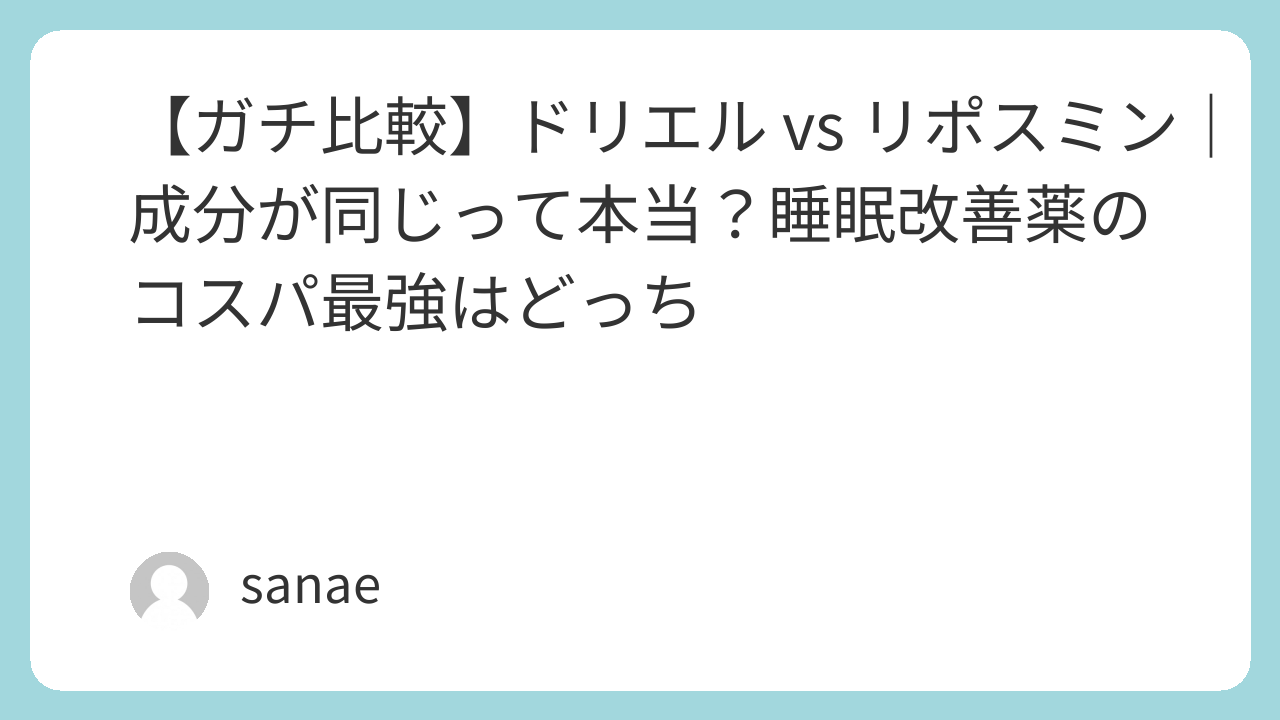 【ガチ比較】ドリエル vs リポスミン|成分が同じって本当?睡眠改善薬のコスパ最強はどっち