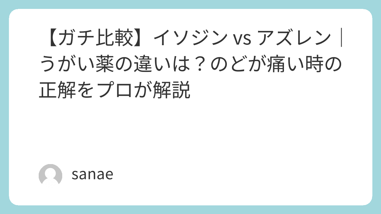 【ガチ比較】イソジン vs アズレン|うがい薬の違いは?のどが痛い時の正解をプロが解説
