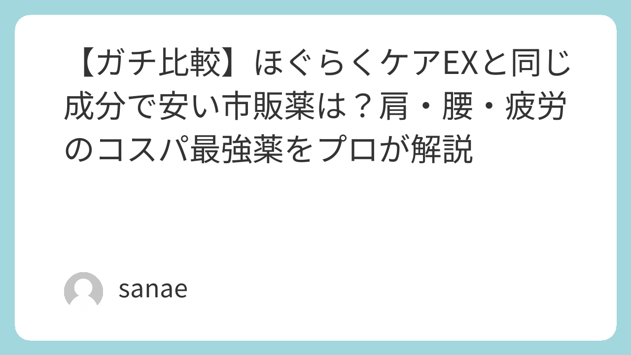 【ガチ比較】ほぐらくケアEXと同じ成分で安い市販薬は?肩・腰・疲労のコスパ最強薬をプロが解説