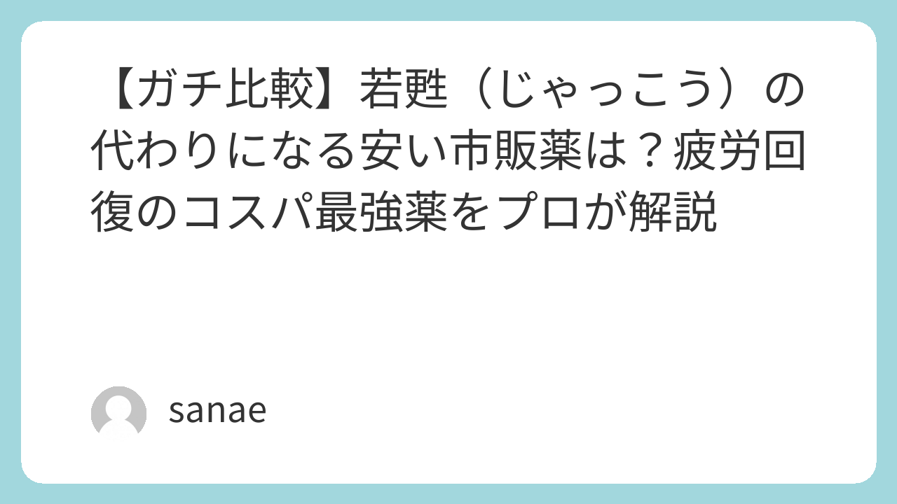 【ガチ比較】若甦(じゃっこう)の代わりになる安い市販薬は?疲労回復のコスパ最強薬をプロが解説