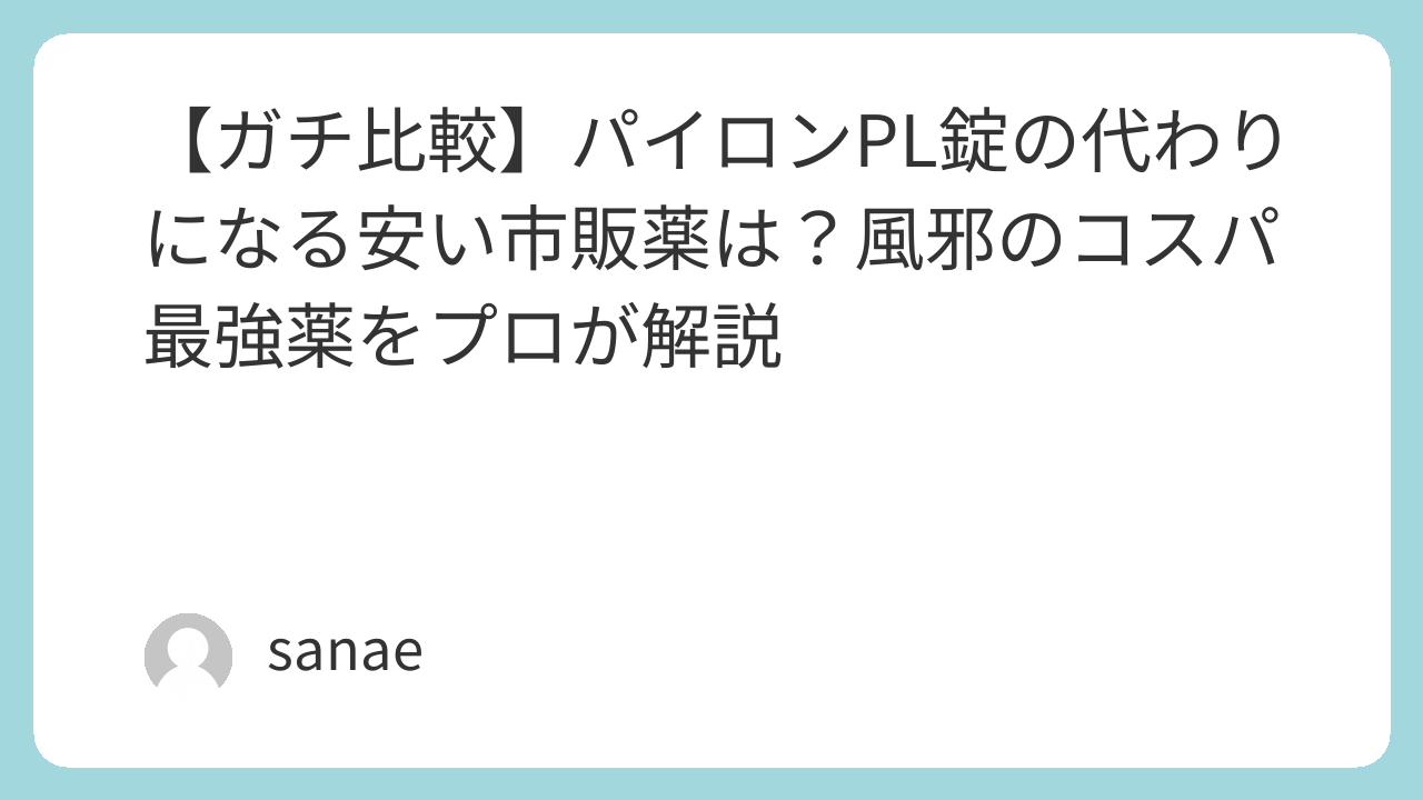 【ガチ比較】パイロンPL錠の代わりになる安い市販薬は?風邪のコスパ最強薬をプロが解説