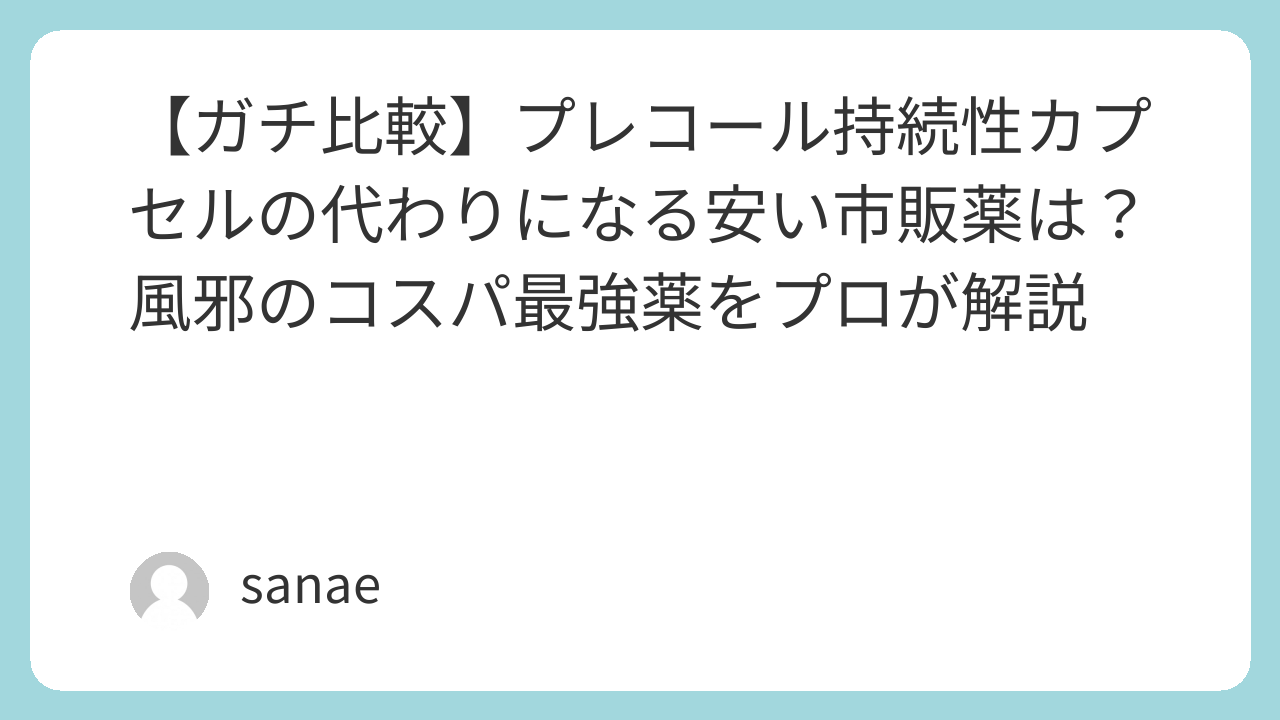 【ガチ比較】プレコール持続性カプセルの代わりになる安い市販薬は?風邪のコスパ最強薬をプロが解説