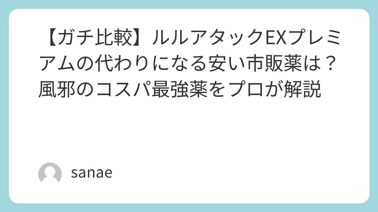 【ガチ比較】ルルアタックEXプレミアムの代わりになる安い市販薬は?風邪のコスパ最強薬をプロが解説