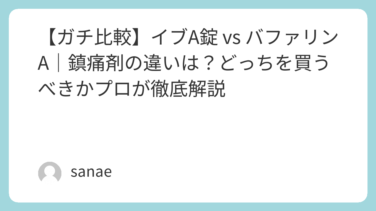 【ガチ比較】イブA錠 vs バファリンA|鎮痛剤の違いは?どっちを買うべきかプロが徹底解説
