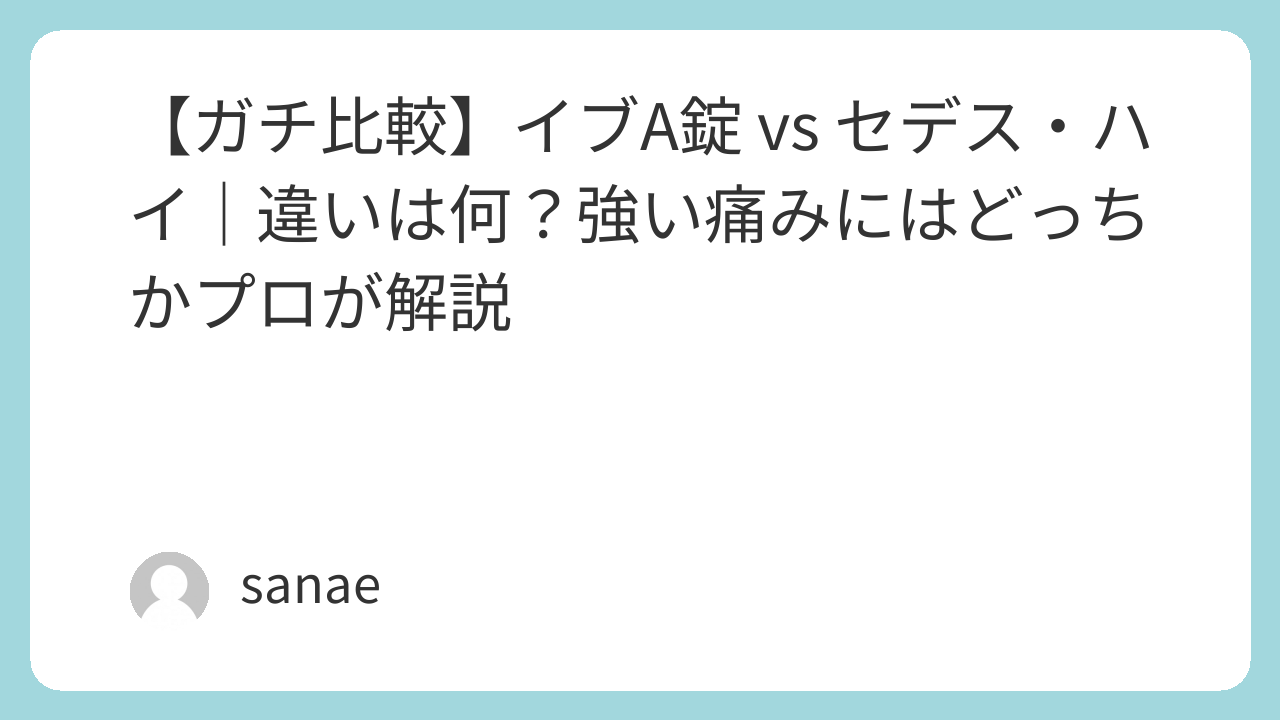 結論から申し上げます。「イブA錠」と「セデス・ハイ」は、痛みを止める成分の系統が全く異なる、「王道・コスパ薬」と「激痛向けの最終兵器」という関係です!