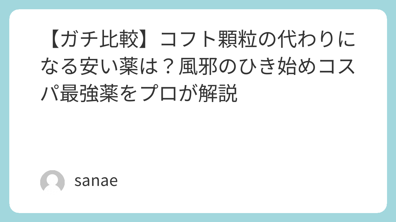 【ガチ比較】コフト顆粒の代わりになる安い薬は?風邪のひき始めコスパ最強薬をプロが解説