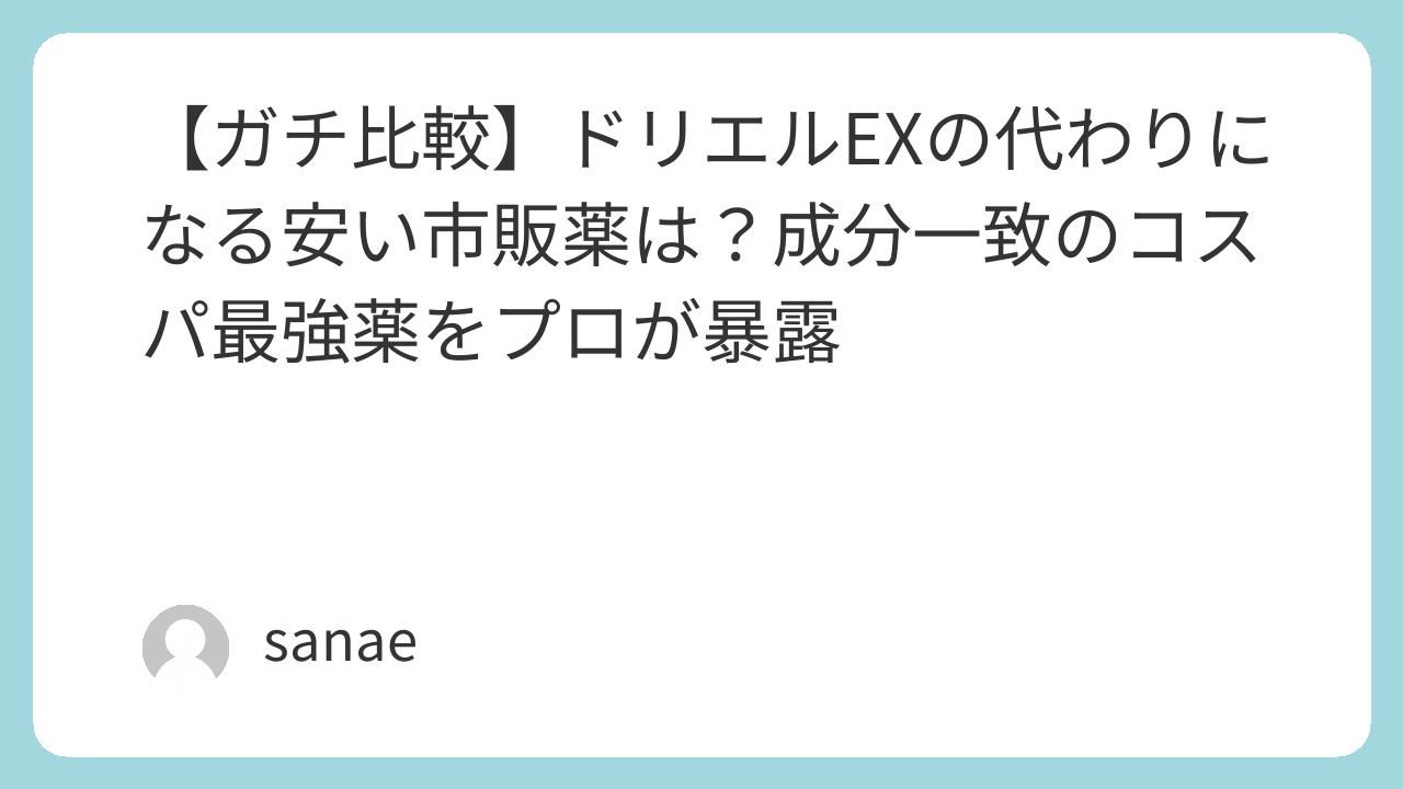 【ガチ比較】ドリエルEXの代わりになる安い市販薬は?成分一致のコスパ最強薬をプロが暴露