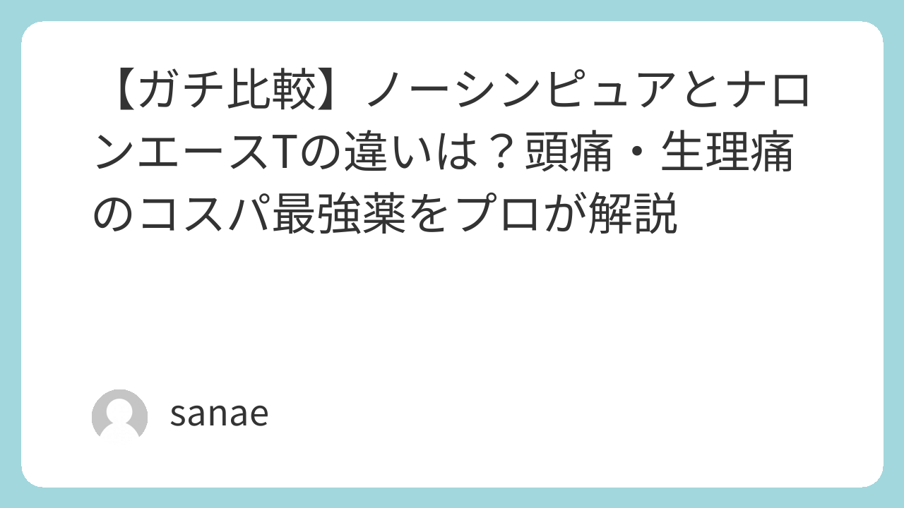 【ガチ比較】ノーシンピュアとナロンエースTの違いは?頭痛・生理痛のコスパ最強薬をプロが解説