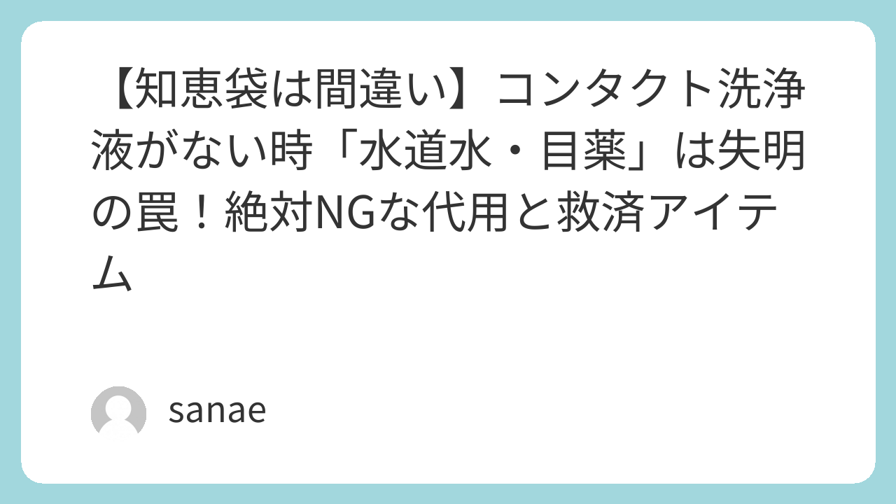 【知恵袋は間違い】コンタクト洗浄液がない時「水道水・目薬」は失明の罠!絶対NGな代用と救済アイテム